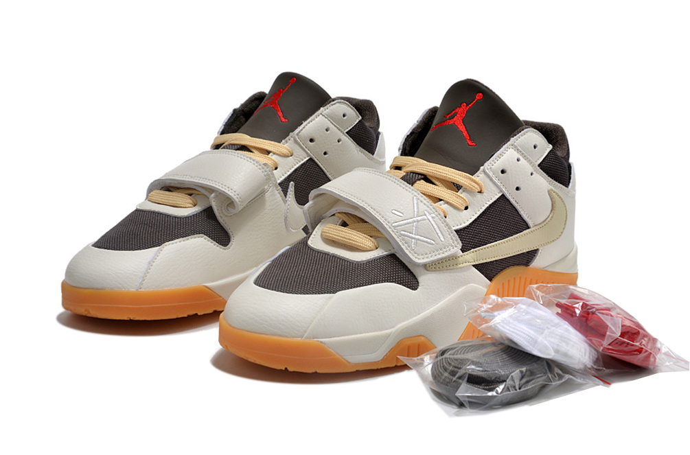 Сочетание темно-коричневого канваса и молочно-белых кожаных накладок отсылает к самым дорогим и редким релизам Трэвиса, делая образ узнаваемым за версту.