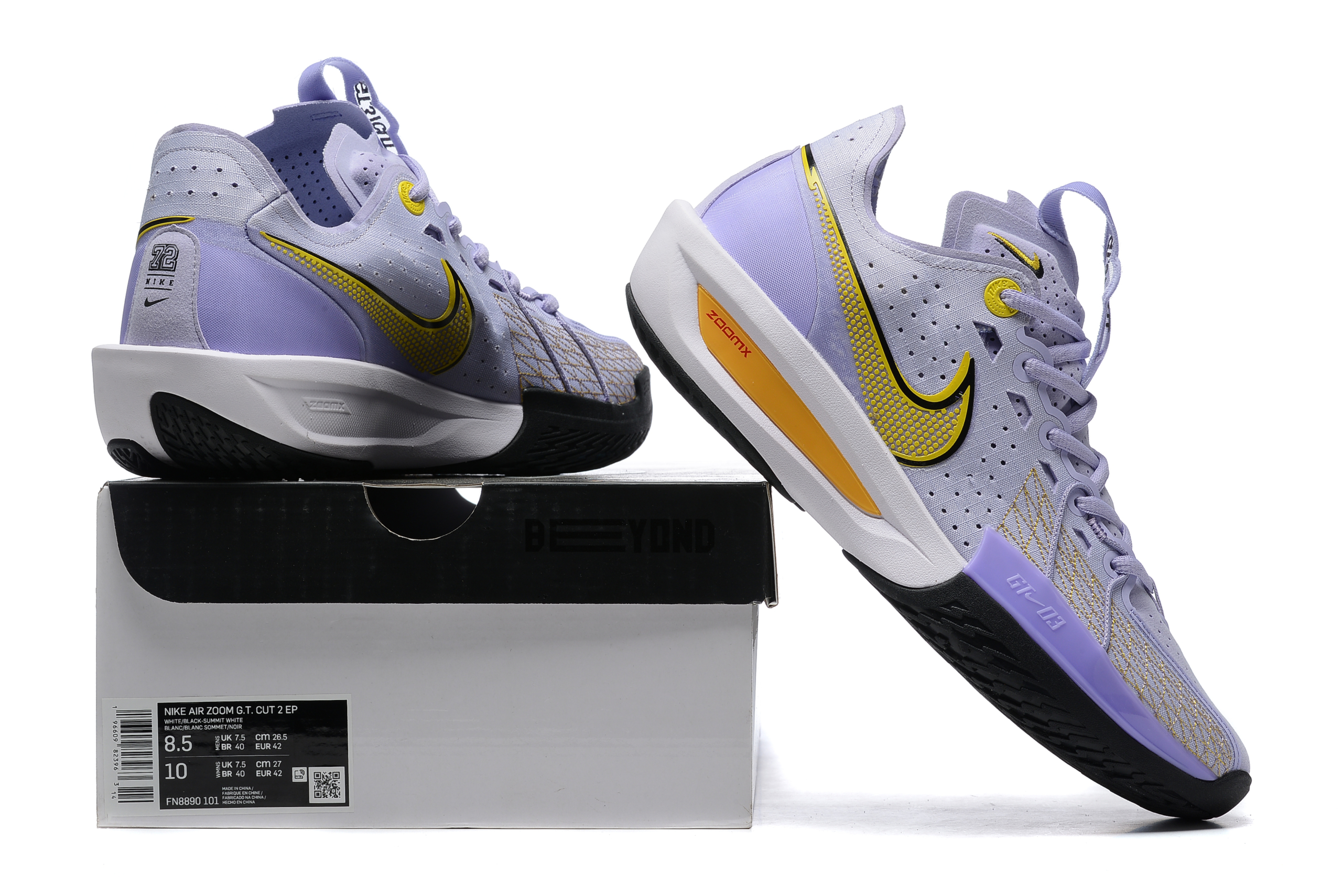 • Яркий дизайн “Lakers”: Кроссовки выполнены в фиолетово-золотых цветах, что делает их идеальными для поклонников Лейкерс. Этот стильный внешний вид позволяет выделяться как на корте, так и вне его.